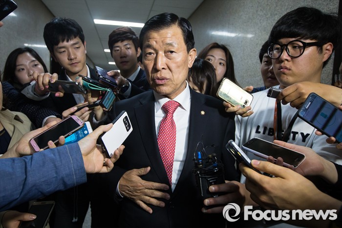| △ 취재진 질문 답하는 황진하 |