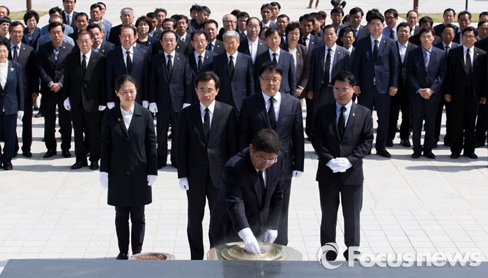 (광주=포커스뉴스) 14일 오후 광주 북구 국립5.18민주묘지에서 국민의당 광주 지역 당선자들이 참배를 하고 있다.