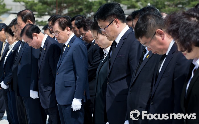 | △ 묵념하는 국민의당 광주 지역 당선자들 |