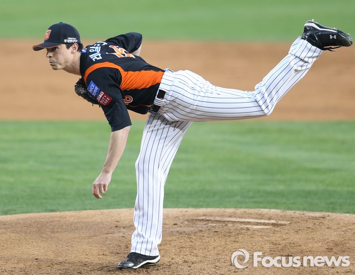 (서울=포커스뉴스) 14일 서울 잠실구장에서 열린 2016 프로야구 롯데-LG 경기에서 2회말 롯데 선발투수 레일리가 투구하고 있다.