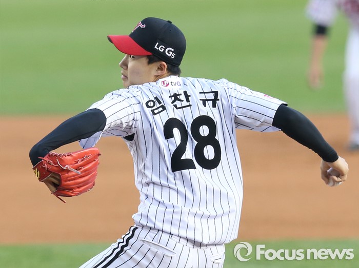 (서울=포커스뉴스) 14일 서울 잠실구장에서 열린 2016 프로야구 롯데-LG 경기에서 1회초 LG 선발투수 임찬규가 투구하고 있다.