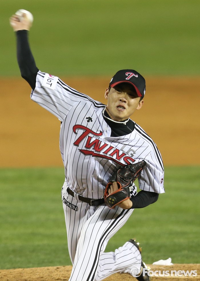 (서울=포커스뉴스) 14일 서울 잠실구장에서 열린 2016 프로야구 롯데-LG 경기 9회초 LG 투수 임정우가 투구하고 있다.