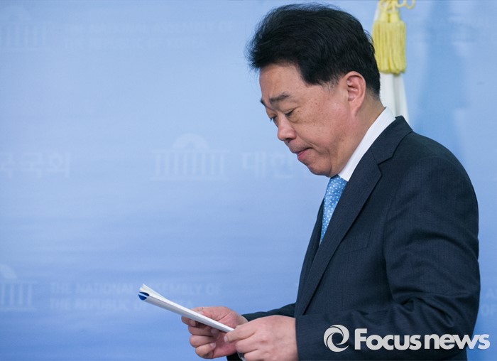 (서울=포커스뉴스) 김성수 더불어민주당 대변인이 15일 오전 서울 여의도 국회 정론관에서 비대위원 명단 발표를 마친 뒤 퇴장하고 있다. 비대위원으로는 이종걸, 진영, 양승조, 정성호, 김현미, 이개호 의원 등이 임명됐다.
