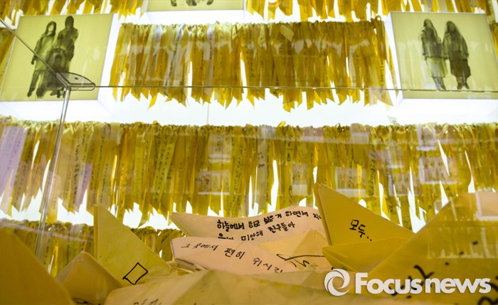 (서울=포커스뉴스) 세월호 2주기를 하루 앞둔 15일 오전 서울 중구 서울도서관에 마련된 '별이되다' 추모 전시관에 시민들이 희생자들에게 남긴 메세지가 전시되고 있다.