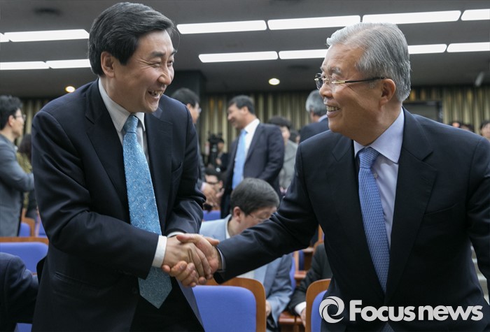 | △ 웃으며 악수하는 김종인-이종걸 |