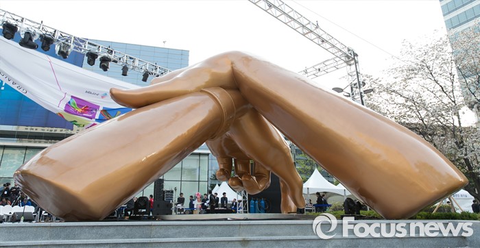 (서울=포커스뉴스) 15일 오후 서울 강남구 삼성동 코엑스 동측 광장 앞에서 강남스타일 랜드마크 조형물 준공 기념 제막식에 앞서 식전행사가 열리고 있다.