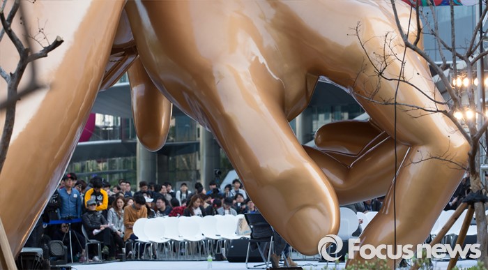 (서울=포커스뉴스) 15일 오후 서울 강남구 삼성동 코엑스 동측 광장 앞에서 강남스타일 랜드마크 조형물 준공 기념 제막식에 앞서 식전행사가 열리고 있다.