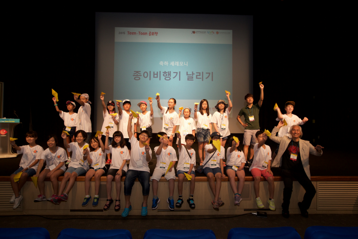 또한 최고상인 ‘으뜸상’ 수상자에게는 내년 세계어린이만화가대회 포스터의 원안을 그리는 영예가 주어진다.2015 세계어린이만화가대회 진행 모습.<사진제공=한국만화영상진흥원>