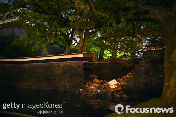 아오키 겐 기상청 지진·쓰나미감시과장은 "14일 지진이 벳푸-하네야마 단층 이동에 영향을 줬을 것"이라고 분석했다.14일 일본 규슈 구마모토 현에서 발생한 지진으로 인해 구마모토 성곽이 무너졌다. 일본지진연구소는 히나구 단층대가 이동하면서 지표면에 균열이 생겼다고 밝혔다. (Photo by Masterpress/Getty Images) 2016.04.15 ⓒ게티이미지/이매진스 (서울=포커스뉴스) 14일 오후 9시 26분쯤 일본 규슈 구마모토현에서 진도 6.5 지진이 발생했다. 이번지진은 2011년 3월 발생한 동일본대지진 이후 일본에서 발생한 최대 지진이다. 2016.04.15 조숙빈 기자