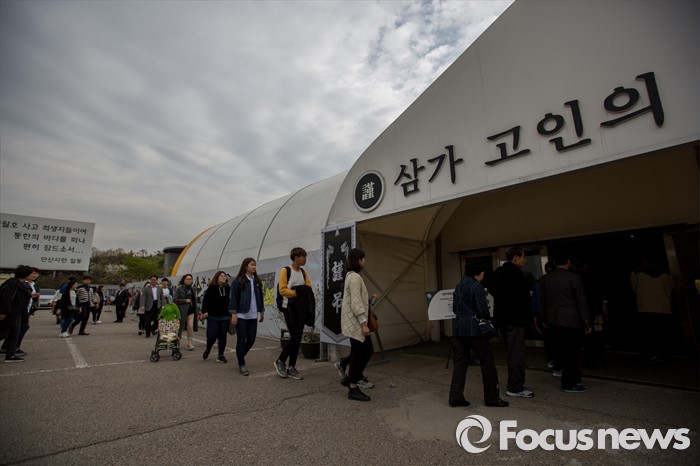 (안산=포커스뉴스) 세월호 참사 2주기인 16일 오전 경기도 안산시 단원구 화랑유원지에 마련된 합동분향소에 추모객 발길이 이어지고 있다.