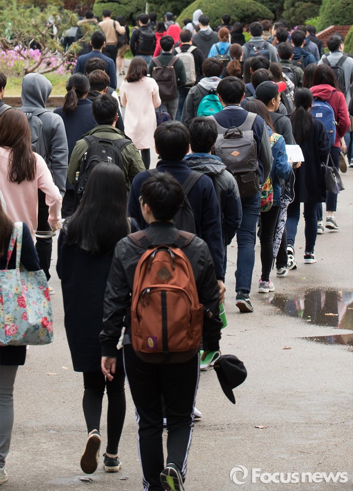 (서울=포커스뉴스) 17일 오전 서울 강남구 단국대학교부속고등학교에서 삼성그룹 공개채용시험 직무적성검사(GSAT)를 치르기 위한 취업준비생들이 고사장으로 향하고 있다.