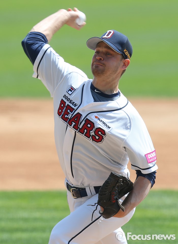 (서울=포커스뉴스) 17일 서울 잠실구장에서 열린 2016 프로야구 삼성-두산 경기에서 1회초 두산 선발투수 보우덴이 투구하고 있다.