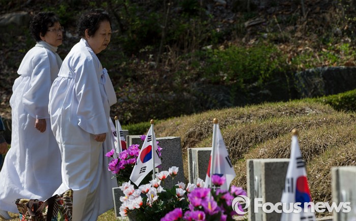 (서울=포커스뉴스) 4·19 혁명 56주기를 하루 앞둔 18일 오전 서울 강북구 국립4.19 민주묘지를 찾은 유가족들이 희생자의 묘소로 향하고 있다.