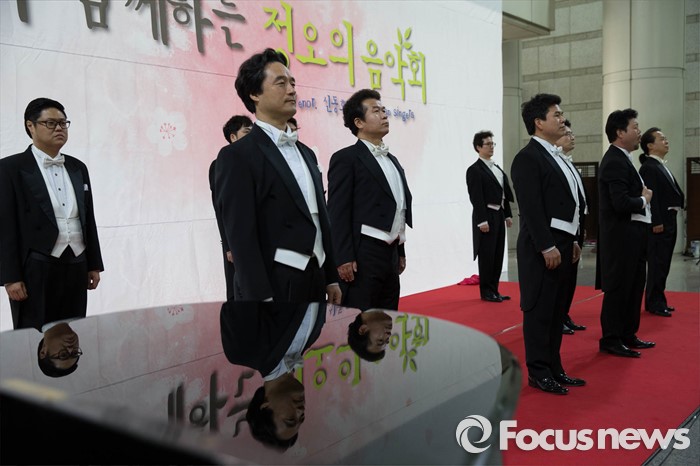 (서울=포커스뉴스) 18일 오전 서울 서초구 중앙지방법원에서 보헤미안 싱어즈가 '시민과 함께하는 음악회'에 참석해 공연을 하고 있다.