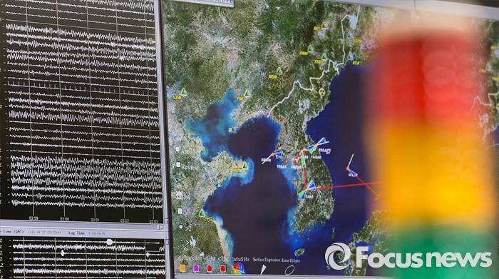 (대전=포커스뉴스) 오스카 에레라 주한 에콰도르 대사가 18일 오전 대구 유성구 한국지질자원연구원 내 지진연구센터 상황실을 방문한 상황싱 모니터에 현재 지질상황이 보이고 있다.
