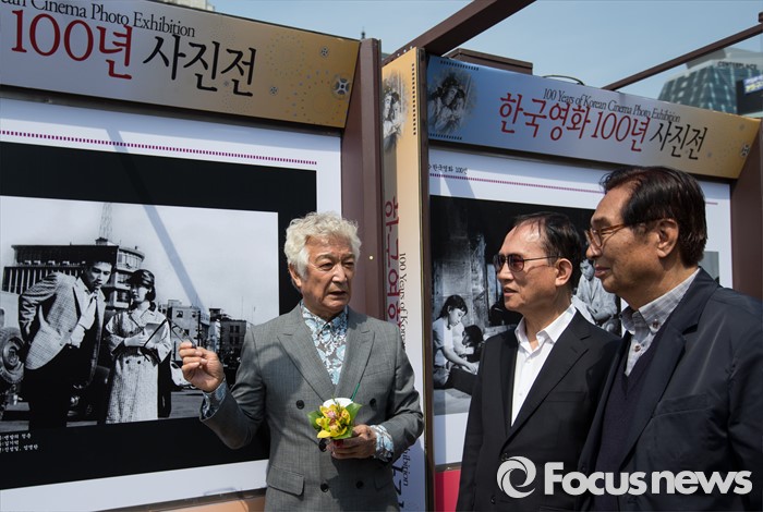 18일 오후 서울광장에서 문화체육관광부 산하 한국영상자료원(원장 류재림)은 '한국영화 100년 사진전' 개막식을 개최했다. 당일 현장에는 한국영화의 역사로 꼽히는 영화감독 배창호, 김수용, 이장호, 임권택, 배우 신성일, 신영균 등이 참석했다.