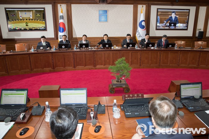 (서울=포커스뉴스) 황교안 국무총리가 19일 오전 서울 종로구 정부서울청사에서 열린 국무회의에 참석해 개회를 알리는 의사봉을 두드리고 있다.