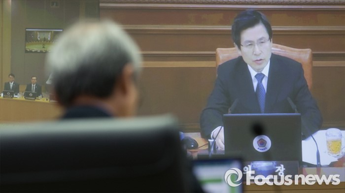 (세종=포커스뉴스) 19일 오전 세종시 정부세종청사 국무회의장에서 서울-세종 영상회의로 열린 국무회의에 참석한 국무위원들이 황교안 총리의 모두발언을 경청하고 있다.