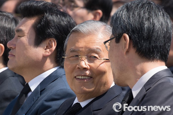 (서울=포커스뉴스) 19일 오전 서울 강북구 국립 4.19 민주묘지에서 열린 '제56주년 4.19혁명 기념식'에 참석한 김종인(가운데) 더불어민주당 비대위 대표가 국민의당 대표자격으로 참석한 김성식(오른쪽) 국민의당 당선인과 대화하고 있다.