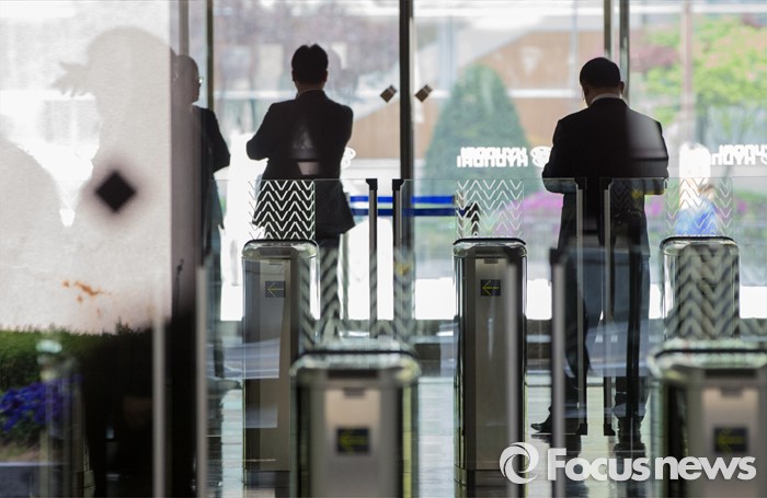 (서울=포커스뉴스) 검찰이 19일 평창올림픽을 위한 원주~강릉간 철도공사에 참여한 한진중공업과 현대건설, 두산중공업, KCC건설 등 건설업체 4곳을 압수수색했다. 이날 오전 압수수색이 진행중인 서울 종로구 현대건설 사옥.