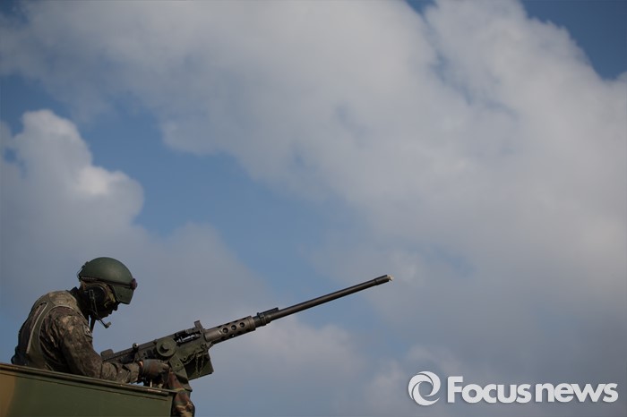 (여주=포커스뉴스) 19일 오전 경기도 여주시 남한강 일대에서 육군 20사단이 K-2 흑표전차 잠수도하훈련을 하고 있다.