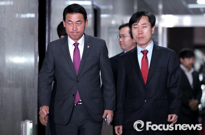 (서울=포커스뉴스) 원유철 새누리당 원내대표의 비상대책위원회 체제에 반대 입장을 가진 의원 및 당선인으로 구성된 당 혁신모임(가칭) 소속 황영철, 하태경, 오신환, 김영우 의원이 19일 오후 서울 여의도 국회에서 면담을 위해 원 원내대표 집무실로 향하고 있다.
