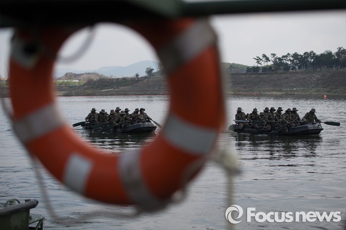 (여주=포커스뉴스) 19일 오전 경기도 여주시 남한강 일대에서 육군 20사단이 K-2 흑표전차 잠수도하훈련을 하고 있다.