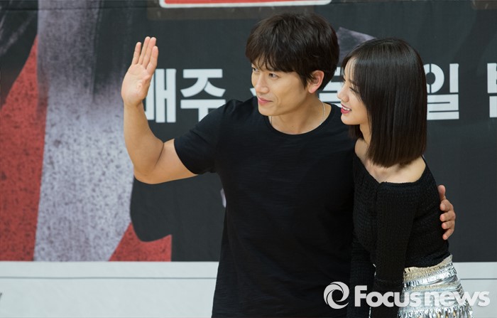 (서울=포커스뉴스) 19일 오후 서울 SBS 목동사옥에서 열린 SBS 드라마 스페셜 '딴따라' 제작발표회에 참석한 배우 지성(왼쪽)과 혜리가 포토타임을 갖고 있다.