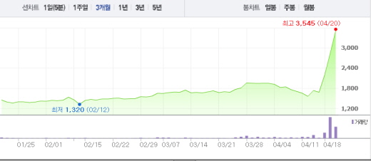 뉴보텍은 이날까지 포함해 3거래일 연속 가격제한폭까지 치솟고 있다. 18일(29.76%), 19일 (29.82%)에 이어 24%의 상승폭을 기록 중이다. 오전 10시16분 현재 뉴보텍은 전일 대비 24.03%(680원) 오른 3510원에 거래되고 있다.