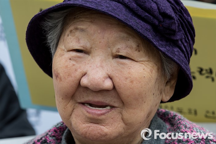 (서울=포커스뉴스) 20일 오후 서울 종로구 옛 주한일본대사관 앞에서 피해 할머니들을 비롯한 한국정신대문제대책협의회와 참석자들이 '제1227차 일본군 위안부 문제해결을 위한 정기 수요시위'를 하고 있다.