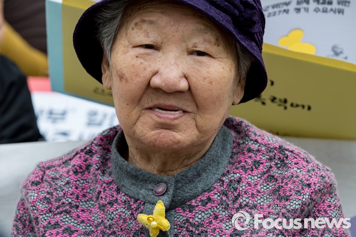 (서울=포커스뉴스) 20일 오후 서울 종로구 옛 주한일본대사관 앞에서 피해 할머니들을 비롯한 한국정신대문제대책협의회와 참석자들이 '제1227차 일본군 위안부 문제해결을 위한 정기 수요시위'를 하고 있다.