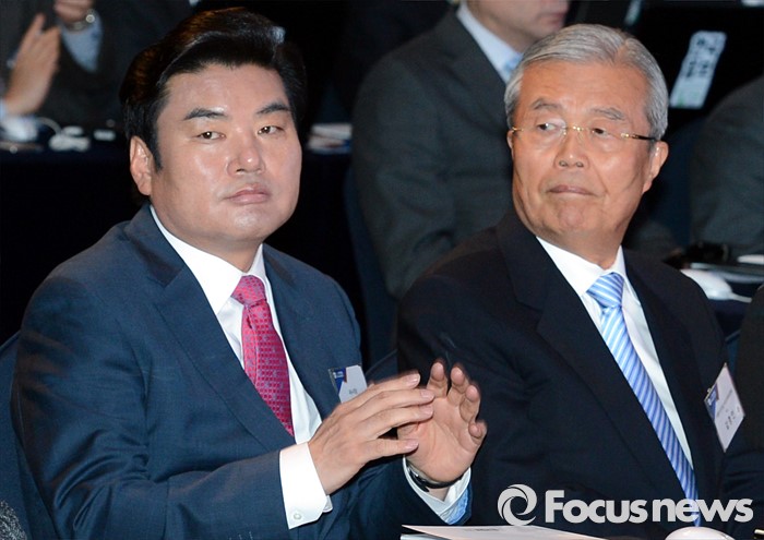 원 원내대표는 자신의 직위와 관련해 "제가 법적으로는 비대위원장이 아니다. 합의 추대해서 내정만 한 상태"라며 "공식적으로는 대표 권한대행"이라고 설명했다.원유철(왼쪽) 새누리당 원내대표와 김종인 더불어민주당 비대위 대표가 20일 오전 서울 중구 을지로 롯데호텔에서 열린 2016 한국포럼에 참석해 자리하고 있다. 2016.04.20 사진공동취재단