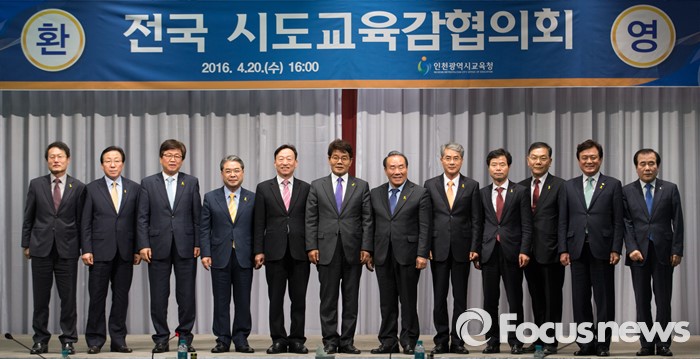 (인천=포커스뉴스) 전국 교육감들이 20일 오후 인천 중구 하버파크호텔에서 열린 전국 시도교육감협의회 간담회에 참석해 기념촬영 하고 있다.
