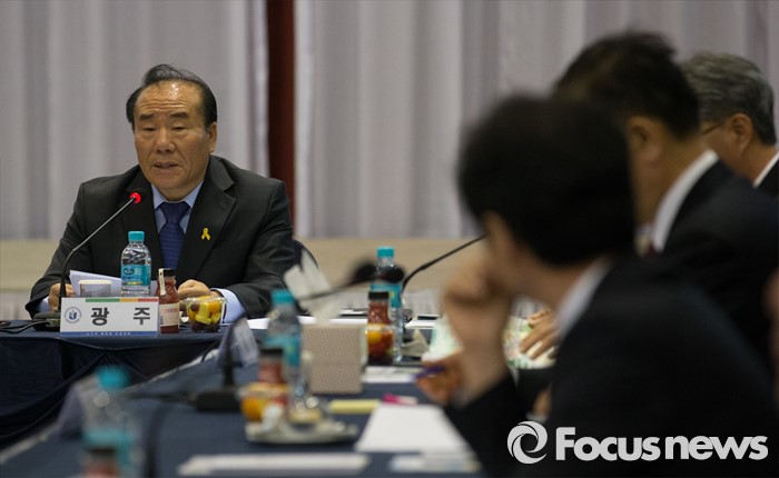 (인천=포커스뉴스) 장휘국 광주시교육감이 20일 오후 인천 중구 하버파크호텔에서 열린 전국 시도교육감협의회 간담회에 참석해 모두발언 하고 있다.