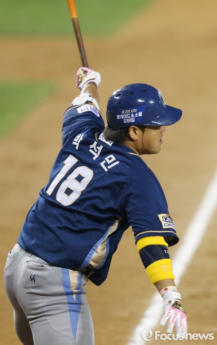 (서울=포커스뉴스) 20일 서울 잠실구장에서 열린 2016 프로야구 NC-LG 경기 3회초 2사 2루에서 NC 박석민이 2루주자 이종욱을 불러들이는 우중간 2루타를 날리고 있다.