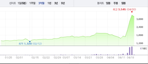 뉴보텍은 3거래일 연속 가격제한폭까지 치솟았지만 이날 하락 반전했다. 21일 오전 9시14분 현재 뉴보텍은 전일 대비 3.48%(115원) 떨어진 3185원에 거래되고 있다.