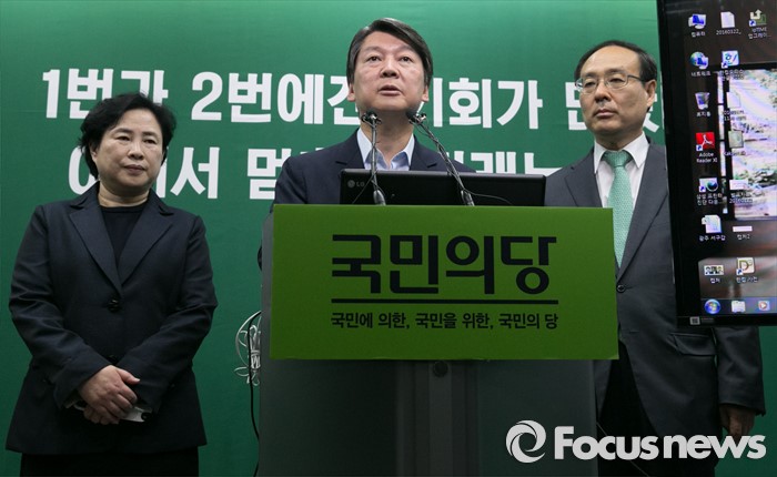 (서울=포커스뉴스) 안철수 국민의당 상임공동대표가 21일 오전 서울 마포구 당사에서 과학의 날 특별 브리핑을 하고 있다. 왼쪽부터 신용현 비례대표 당선인, 안 대표, 오세정 비례대표 당선인.