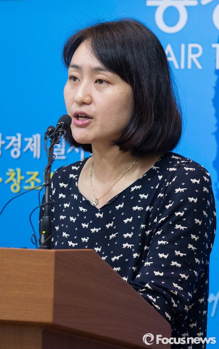 (세종=포커스뉴스) 민혜영 공정거래위원회 약관심사과장이 21일 오전 세종시 정부세종청사 공정위 기자실에서 브리핑을 갖고 애플코리아와 애플 공인 서비스 제공업체 간 애플 제품 수리 위·수탁계약서상 20개 불공정 약관조항을 시정했다고 밝히고 있다.