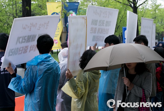(서울=포커스뉴스) 21일 오전 서울 여의도 전경련회관에서 재벌사내유보금환수운동본부 등 관련단체 회원들이 재벌사내유보금 현황발표 및 환수운동 선포 기자회견을 하고 있다.