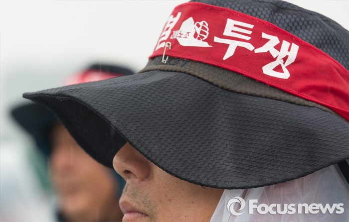 (세종=포커스뉴스) 전국건설노동조합 구성원들이 21일 오전 세종시 정부세종청사 제3주차장에서 확대간부 결의대회를 갖고 공정거래위원회가 시행한 건설현장 불공정 행위에 대한 대책인 하도급대금직불제가 건설노동자의 임금체불이 늘어날 수 있다고 주장하며 즉각적인 철회를 요구하고 있다.