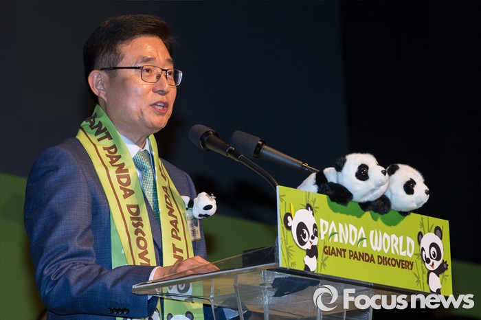 (용인=포커스뉴스) 21일 오전 경기도 용인시 에버랜드에서 열린 '판다월드 개관식'에서 김봉영 삼성물산 대표이사 사장이 축사를 하고 있다.