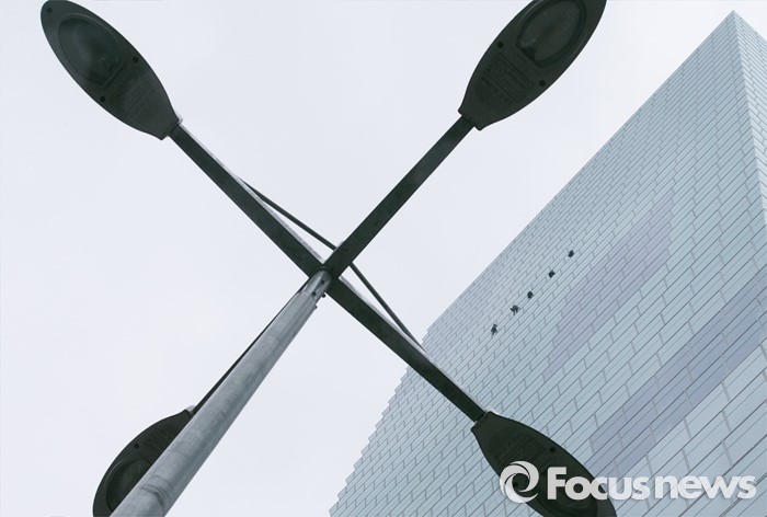 △ 외벽 청소하는 노동자들