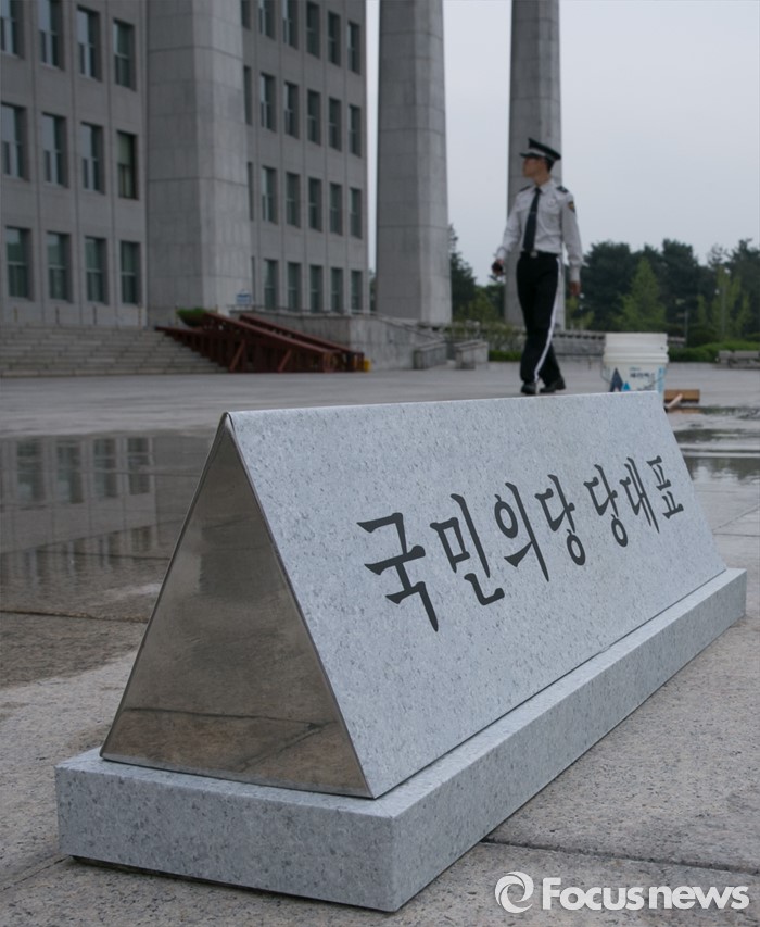 (서울=포커스뉴스) 21일 오전 서울 여의도 국회 본청 앞 주차장에 국민의당 지도부의 주차공간을 위한 명패가 설치되어 있다.