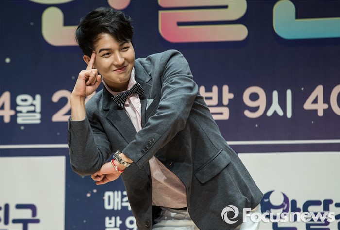 (서울=포커스뉴스) 21일 오후 서울 마포구 JTBC 사옥에서 열린 예능프로그램 '반달친구' 제작발표회에 참석한 아이돌 그룹 위너의 멤버 송민호가 포토타임을 갖고 있다.
