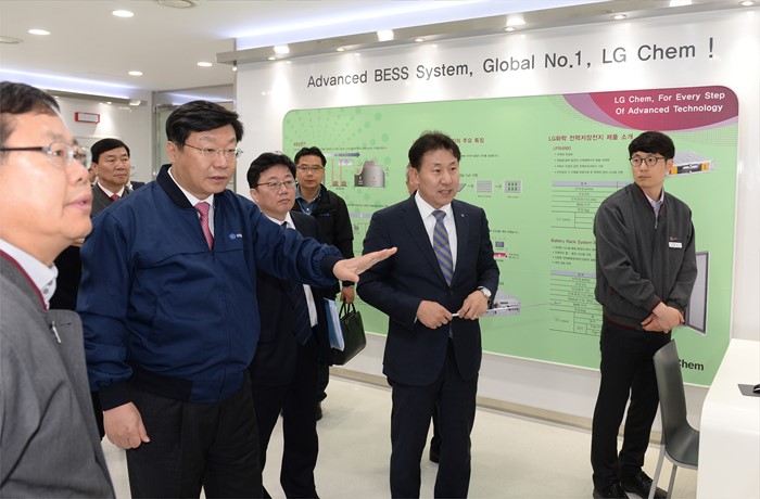 (청주=포커스뉴스) 주형환 산업통상자원부 장관이 21일 오전 충북 청주 오창과학산업단지에 위치한 LG화학 오창공장을 방문, 공장시설물을 둘러보고 있다. <사진제공=산업통상자원부>