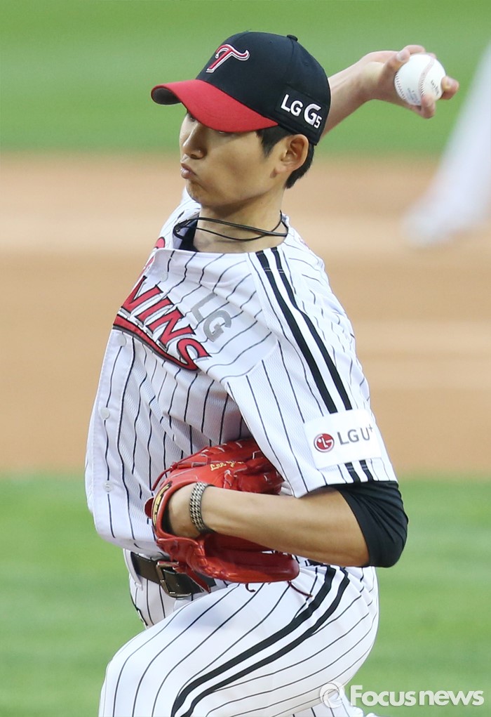(서울=포커스뉴스) 21일 서울 잠실구장에서 열린 2016 프로야구 NC-LG 경기에서 1회초 LG 선발투수 이준형이 투구하고 있다.