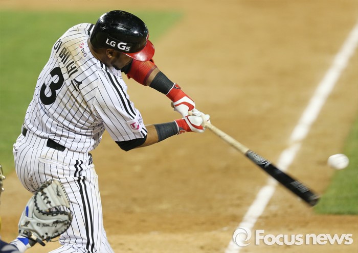 (서울=포커스뉴스) 21일 서울 잠실구장에서 열린 2016 프로야구 NC-LG 경기 5회말 2사 1,2루에서 LG 히메네스가 좌월 3점 연타석 홈런을 치고 있다.
