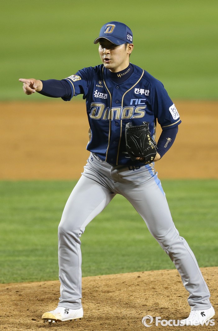(서울=포커스뉴스) 21일 서울 잠실구장에서 열린 2016 프로야구 NC-LG 경기에서 9회말 NC 투수 임창민이 LG 정주현을 삼진으로 잡고 경기를 마무리짓고 있다.