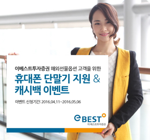 (서울=포커스뉴스) 이베스트투자증권은 5월6일까지 해외선물·옵션 고객을 위한 휴대폰 단말기 지원 및 캐시백 이벤트를 진행한다고 22일 밝혔다.