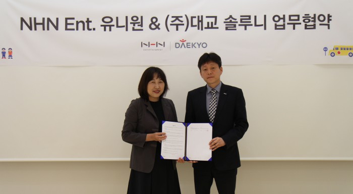 (서울=포커스뉴스) NHN엔터테인먼트(대표이사 정우진)은 대교(대표이사 조영완) 독서논술 전문학습 솔루니와 업무제휴 협약을 체결했다고 22일 밝혔다.